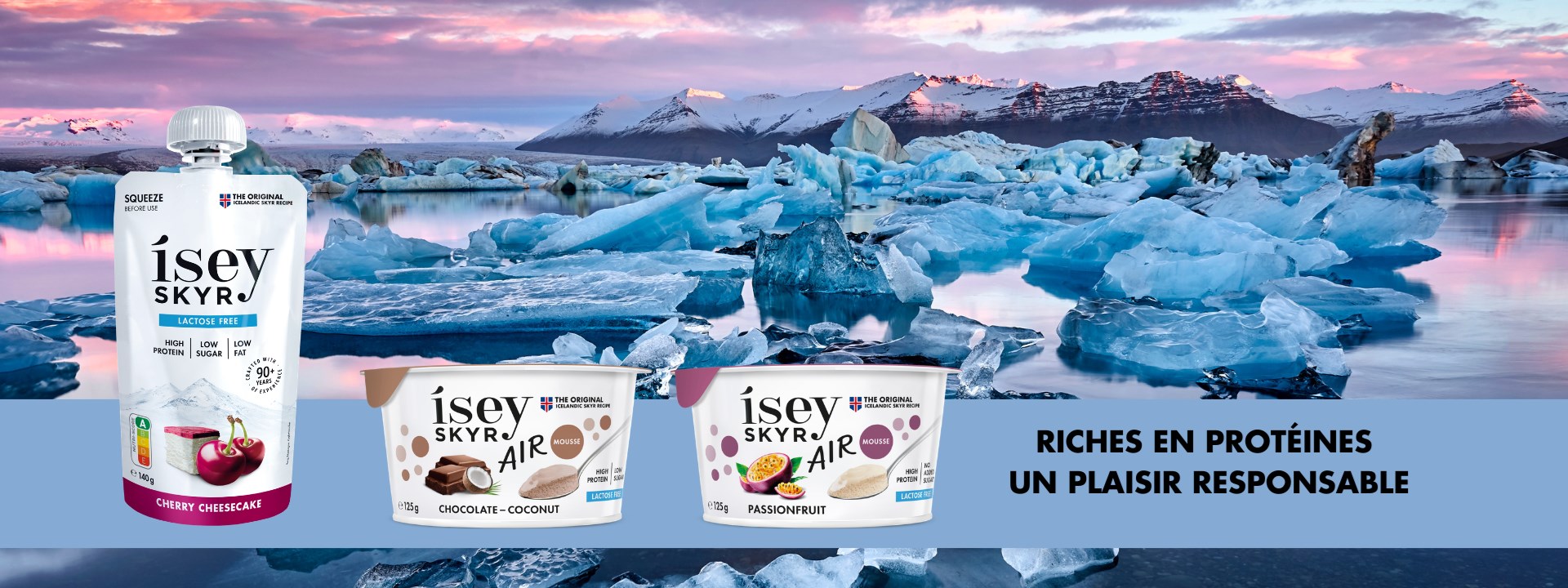 Déjà renommé comme produit laitier de “SUPRA-NUTRITION”, l’ISEY SKYR est exceptionnellement chargé de protéines. En plus, malgré l’absence de matières grasses, le skyr a une texture lisse et veloutée et un goût crémeux. Étant un favori traditionnel des Islandais, Ísey Skyr est le seul skyr qui contient des cultures de skyr originales islandaises de Laiteries MS Islande, et qui est fabriqué selon la recette islandaise originale.